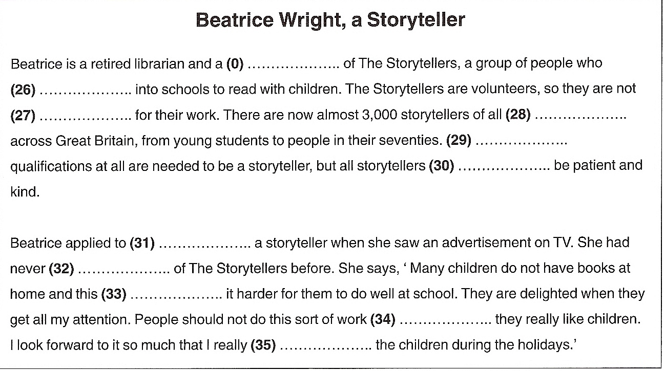 Read the text below and choose the correct word for each space. For each question, choose the correct letter A, B, C, or D.