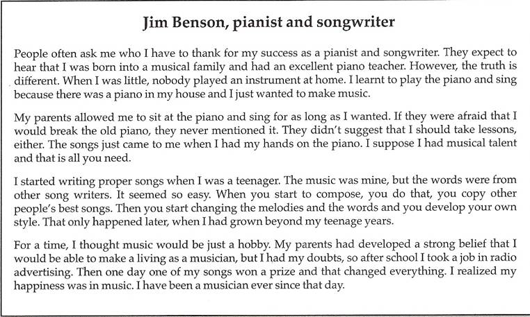 Part 4 Read the text and the questions below. For each question choose the correct answer A, B, C or D.